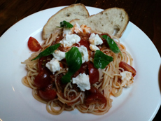 は①トマトとバジル、自家製リコッタチーズの冷製パスタ(\800)②生ハムとサラミ盛り合わせ(\700)③ギネスシチュー自家製バゲット添え(\900)となっております家でもシンプルな冷製トマトパスタは作るけど、これは手が込んでて美味しかったお伺いしたら毎年夏になると作るメニューらしいです(^-^*)これもまねっこしてみよう♪