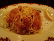 おなかが減っていたのでもう1つ頼んだのは「生ハムとアスパラのペペロンチーノ(\800ぐらい)」こちらはにんにくと唐辛子が効いてて辛めお酒のつまみには丁度いいかな~