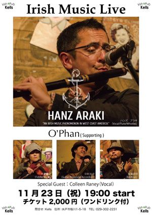 今年も11月23日(土・祝)に水戸市にあるIrish Pub kellsさんにて、ハンズさんのライブが開催されることになりました
