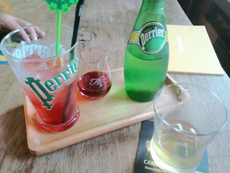 ほのかにローズヒップが香るシロップをペリエで割って頂く、なんともオシャレな飲み物でした