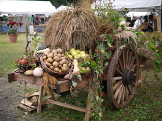今年は「収穫祭」ということであちこちに農作物が飾られていました