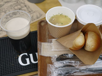 ①主催者のお1人でもあるWHISKEY SHOPさんのアイリッシュシチューセット(パン付500円)と樽生GUINNES~