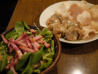 はベーコンサラダ(800円ぐらい)とエビマヨ(1100円ぐらい)