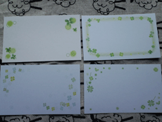 1枚目は近所のパッケ○ジプラザで購入したメッセージカード!(\126で15枚入り)文具店でも見かけたことがあるので、割りと入手しやすいかも。そして2枚目はなんと\100ショップで買ったもの(\105で50枚入り)一番左上のものはちょっと前に買いましたが、他のはつい最近実家の近くにある広いダイソ○で買いました!台紙も名刺っぽい感じで高級感はありませんが~(笑)、枚数が多いので気楽に使える感じが主婦には嬉しいですね(^-^*)