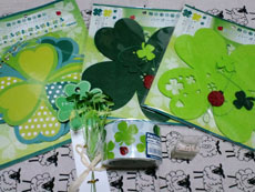 前からぷちすけさんに「あそこのSeriaはよくあるよ~」と聞いていたんですが、丁度春先というのもあってか正面入り口に特設コーナーがぁ~撚(これでも)厳選して、モービル2種類(早速部屋に飾りました♪)とよくPubの天井にあるフラッグみたいにビローンとしたクローバーの飾り、クローバーのモールと、ビニールテープ、あと♪のミニスタンプ烈