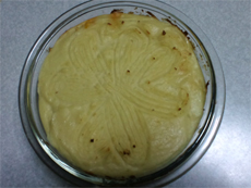 急に暖かくなってきた影響か、大事に食べていた男爵ちゃんからニョキニョキと芽がでてきてしまいました(>_<。)畑があれば喜んで植えるんですが、うちはプランターだけなので諦めてシェパーズパイに(^-^) 大体のレシピは以前ブログに載せた「MaCANN'Sシェパーズパイ」と同じなんですが、今回はミートソースのお肉を「牛挽肉→合挽き肉」にマイナーチェンジ味付けはいつも通りケチャップとハッシュドビーフのルーですが、隠し味にちょっとお醤油を入れてみました(^_-)~☆そしていつもより水分少なめな感じにしてみましたよ~(^0^)ノ そして目分量でホワイトソースも作って~、マッシュポテトは牛乳とコンデンスミルクと砂糖を適当にいれて裏ごしして~(裏ごししたくなくてフードプロセッサー使ったけど、やっぱり滑らかにならなかった)、重ねてシャムロックを描いて焼いて完成そしたら適当に作ったのにとってもおいしかった~「おいしく出来たけど、レシピメモしてない・・・。」と言ったら横でアイリッシュが「(-_-;)」こんな顔してましたが(笑)、やっぱり家庭料理は目分量が一番ですよねぇ~♪そして表面のシャムロック、上手くかけたのに焼き色がイマイチで残念(ノ_-;) でもねぇ、1つ残念だったのが、古いじゃがいもだったからか男爵の「ホクホク」した感じじゃなくて「ねっとり」しちゃったの(x_x)新じゃが季節が既に待ち遠しいです!!今年は嫁実家に「男爵作ってけろ~~!!」って猛烈にお願いしてみたけど、植えつけてくれたかなぁ・・・そして嫁はMaCANN'Sさんのシェパーズパイにより近づくかもしれない方法を思いついたので近いうちに試してみます。むふ。 CA3C1303.jpg